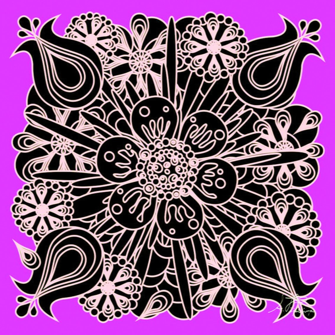 “Desde criança ilustrava desenhos figurativos para presentar meu pai que era um homem rígido, era natural desaparecer aquela rigidez excessiva quando observava minhas primeiras obras. Mais tarde numa colônia da Finlândia no Brasil iniciei pintura em acrílico e arte murale”, contou Adriana.